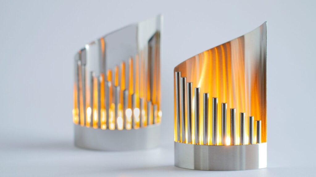 Kynttilälyhty saa revontulet elämään. Lyhty on käsin valmistettu suomalaisesta jaloteräksestä Nikaman omalla tehtaalla Jäälissä.